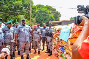 Items seized in 2025 included 22,725 bags of foreign parboiled rice, 2,669 kegs of PMS, 13,332 parcels of cannabis sativa, 2,128 rounds of cartridges, 1,315 explosives, foreign used vehicles, used clothing, tyres, narcotics, arms and ammunition.