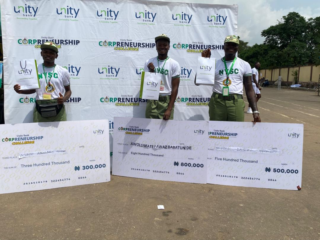 Unity Bank Plc has announced winners in the 27th edition of its flagship Entrepreneurship Development Initiative, also known as Corpreneurship Challenge, following the conclusion of Business Pitch at the Batch C, Stream 2 edition of the National Youth Service Corps (NYSC) orientation programme held across 10 states of the federation.