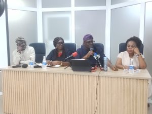The ES, NSC, Dr. Pius Ukeyima Akutah flanked by Mrs Ify Okolue and Mr. Rotimi Anifowoshe to the left and Mrs. Margaret Ogbonna to the right.